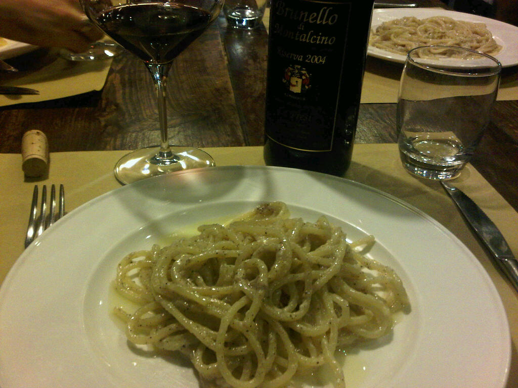 Lunch in castelnuovo berardenga Posted on September 11, 2010 by Do Bianchi At bengodi with friends. Pici cacio e pepe and le presi 04 riserva, so chewy and delicious, such bright acidity. :) Share this: Click to share on X (Opens in new window) X Click to share on Facebook (Opens in new window) Facebook Click to share on Reddit (Opens in new window) Reddit Click to share on LinkedIn (Opens in new window) LinkedIn Click to email a link to a friend (Opens in new window) Email Like Loading... Related