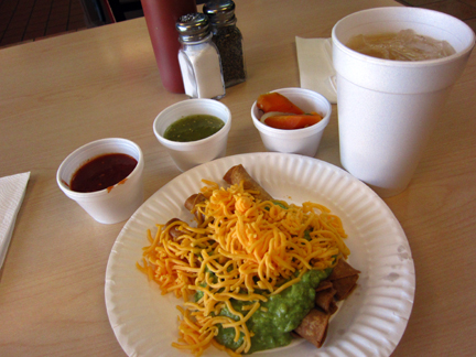 Three rolled tacos — flautas — stuffed with chicken and topped with creamy guacamole and shredded cheese is just $2.25 (only 25 cents more than when I was 18 years old!). Cannot have the flautas without the horchata.