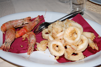 I joined Paolo and his crew last night for dinner at the famous and homey Lecce restaurant Le Zie, where owner Carmela Perrone insisted on showing me how to dress my fave e cicorie (puréed favas and sautéed chicory) and fed me my first bite, telling me to make a wish (I’ll tell you if it comes true this Christmas).