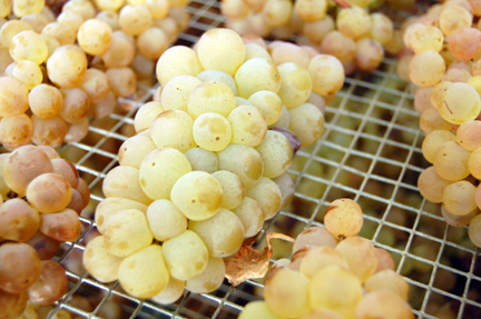 Later in the day, we visited Vino Nobile producer Godiolo, where I snapped this photo of Grechetto grapes drying for Vin Santo. Note the spot on every berry: the Tuscans call their clone of Grechetto pulce in culo or flea in the ass.