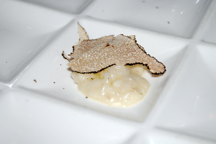Above: Dinner in the wine library at Tony’s last night began with a simple risotto alla parmigiana topped with a few black truffle shavings.