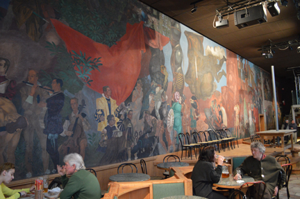 Above: While in Italy, we visited the beer garden where my band used to play in the 1990s before the Tangentopoli bribe scandal. The mural depicts Italian history through the fascist era, when the gesso was painted. Today, the main dining room is used for “lapdance” evenings (note the pole).
