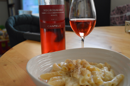 Tracie P (who has a glass of wine a couple nights a week) and I paired with one of our all-time favorite Apulian wines, our good friend and client Paolo Cantele’s 2011 Rosato from Negroamaro.