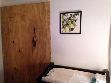 Above: Yesterday afternoon, in broad daylight, thieves busted our front door down and burglarized our house. Today, a piece of plywood covers the entrance to our home.