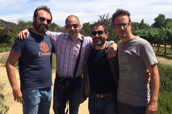 Above, from left: Giovanni, me, Nico, and Andrea in the Groth insectary. Photo by VinoGirl.