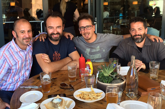Above: me (far left) with team sparkling wine, from left, Giovanni Arcari, Andrea Rudelli, and Nico Danesi (photo by VinoGirl).