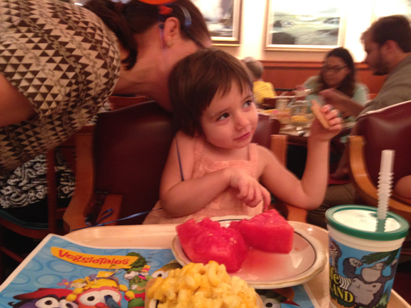 Georgia P wasn’t so keen on her macaroni and cheese (unusual for her, but understandable in the light of the fact that she ate five pieces of bacon and waffles for breakfast). Lila Jane LOVED her baked spaghetti.