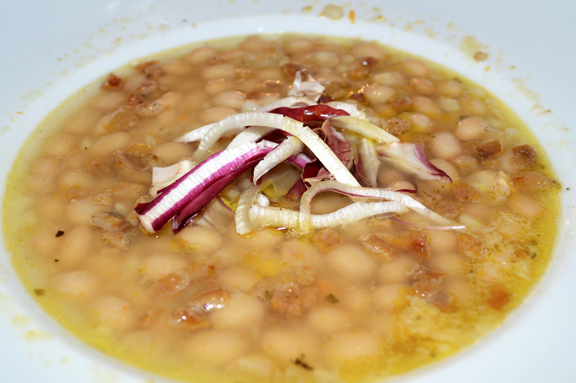 Above: a soup at the Locanda Baggio in Asolo, made with a bean landrace known locally as “gialèt,” a climbing bean, and topped with Treviso radicchio.