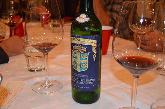 Above: the 1967 vintage was a challenging harvest in Montalcino but the Fattoria dei Barbi Brunello poured the other night was impeccable. Light and bright in color, with the classic tones of old Sangiovese, the fruit in this wine was brilliant, the acidity confident. One of my favorites of the night (a wine made by my client Stefano Cinelli Colombini’s mother Francesca).