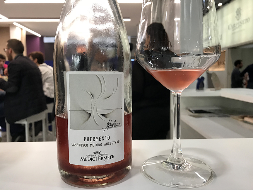 But the twenty-something Alessandro wasn’t interested in showing me the estate’s popular Concerto, its best-selling wine. Instead, he wanted to pour me a wine that he has created and launched this year: Phermento, an ancestral-method Labmrusco di Sorbara.