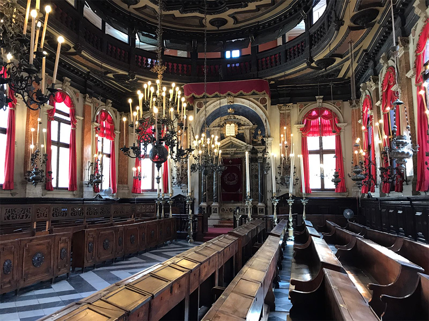 Above: the Spanish Synagogue in Venice, Italy (image via the Venice Museo Ebraico [Jewish Museum] Facebook). There’s no big sign outside revealing the presence of a house of worship. And there’s a reason for that.