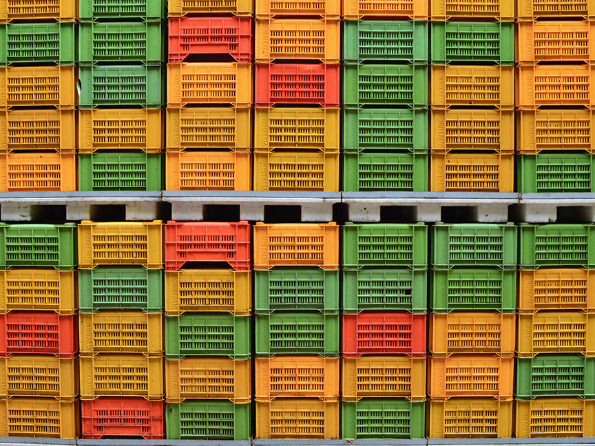 Above: empty picking crates waiting to be filled with grapes at harvest.