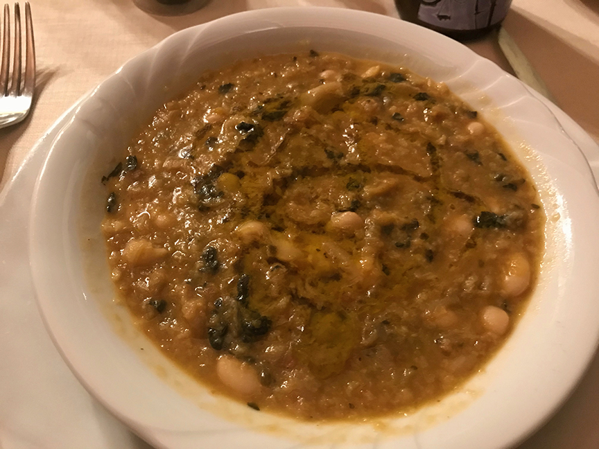 Ribollita, the “twice-boiled” Tuscan soup with beans, bread, and chard on a chilly Tuscan night. My wish came true.