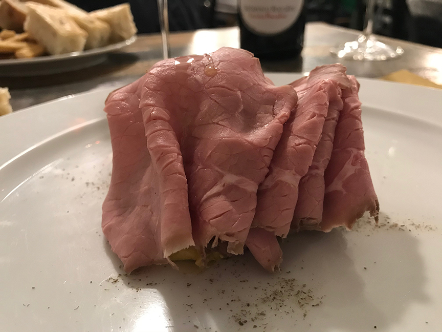 Properly trimmed and sliced mortadella. Isn’t it hard to believe that “bologna/baloney” was inspired by this mother of all sausage? That’s at the Dispensa Pani e Vini in Franciacorta, one of my all-time favorite restaurants.