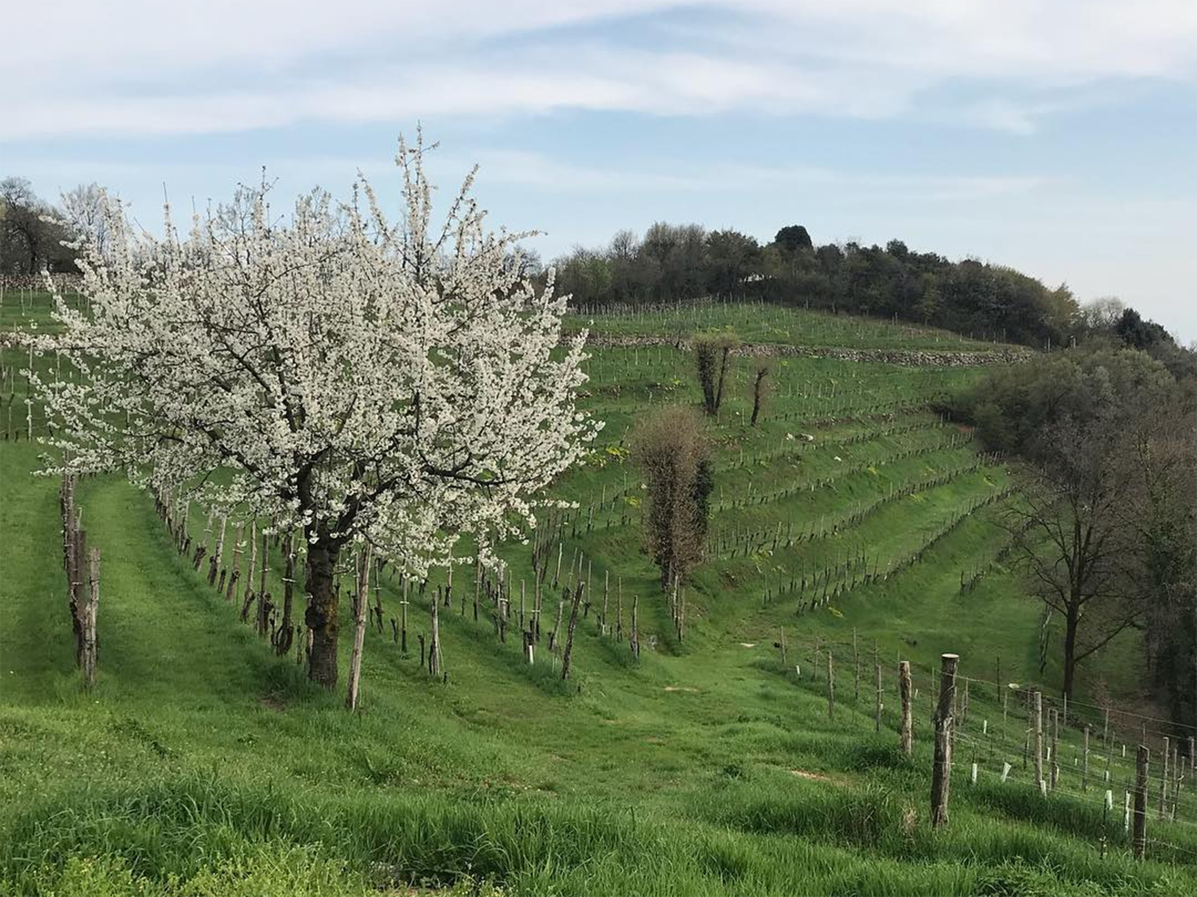Above: the Montorfano (Mt. Orfano) vineyard where Arcari + Danesi grows Chardonnay for their Franciacorta Dosaggio Zero, a wine that they make using their “solo uva” (“just grapes”) method.