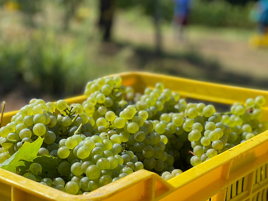 Grapes for sparkling wine, like those in the photos above and below, are generally the first to be picked in any given harvest. Arcari + Danesi is actually one of the latest to pick in their appellation because they like to go for a more ripe style than many of their neighbors.