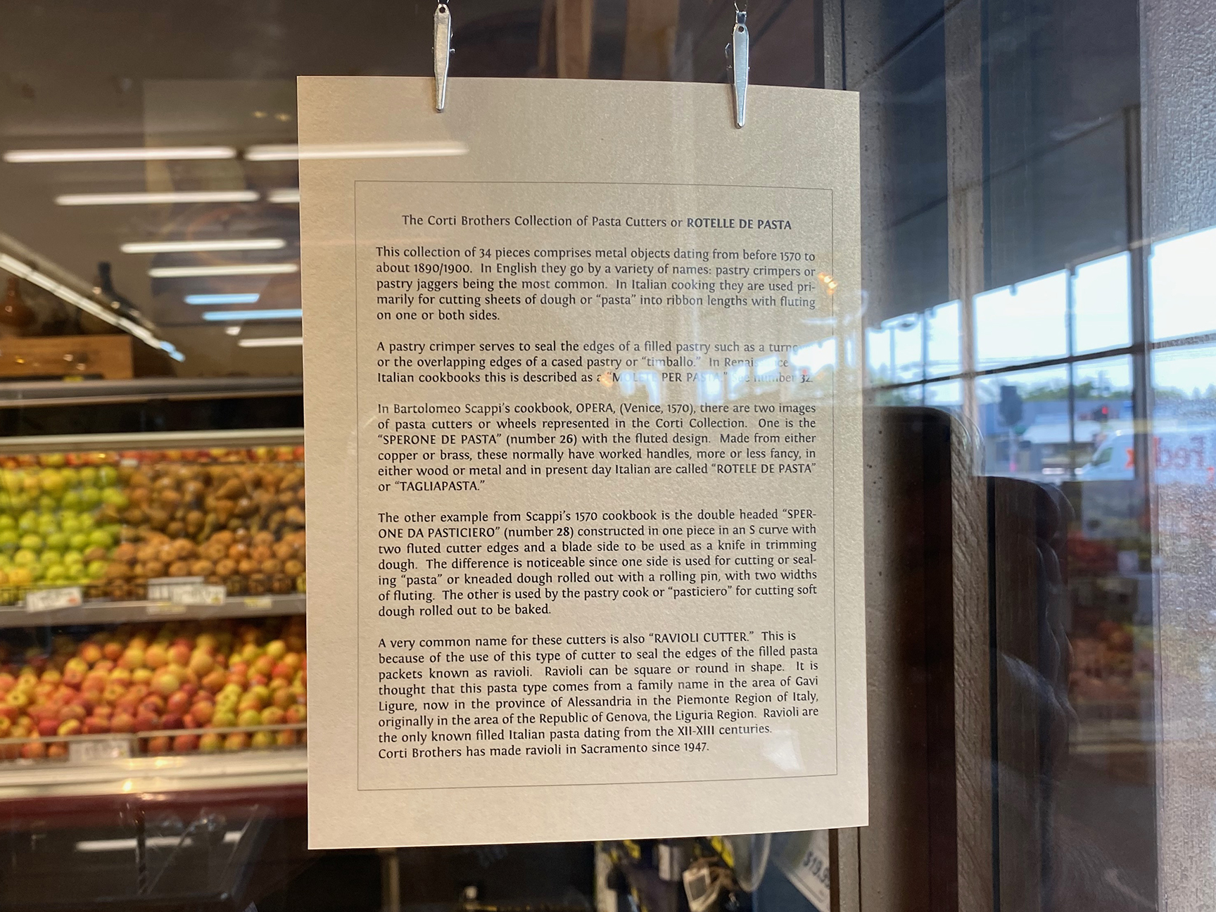In many ways, the food and wine at Corti Bros. is actually a “front.” Not in the sense of a criminal operation. But rather by virtue of the fact that the food and wine are a pretext for what 16th-century European humanists would have called a “gallery of memory.”