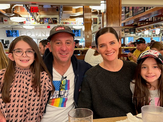 Above, our family, from left: Lila Jane (age 8), me, Tracie, and Georgia (age 10). Photo by Bruce Schoenfeld.