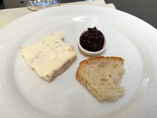 Of course, the wine was the PERFECT pairing for the last dish, a slice of gorgonzola with a dollop of cognà on the side. Check out my notes on cognà here.