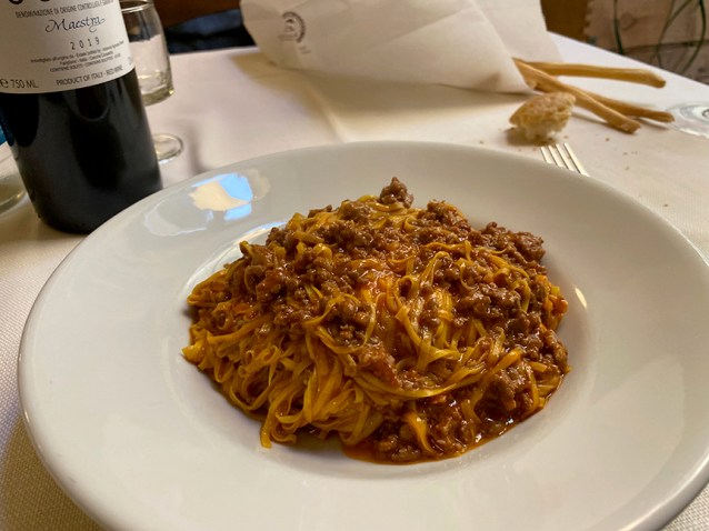 In Piedmont, restaurants like these generally have the same traditional menu, from appetizer to dessert. You won’t find any creative cuisine or colorful interpretations of classic dishes. Gallinaccia is so traditional that they don’t even recommend adding grated Parmigiano Reggiano to their tajarin al ragù (below).
