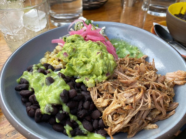That’s the shrimp taco special in the previous photo. And that’s the carnitas plate, served with steaming hot blue corn tortillas. The cocktail menu is rad, too.