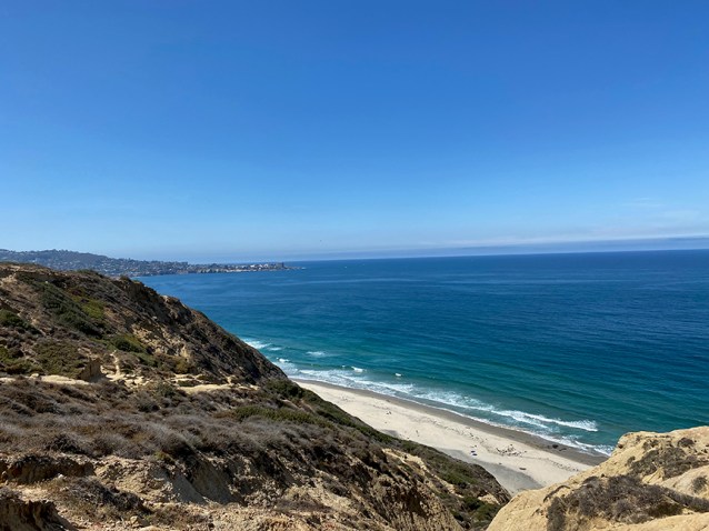 That’s a view of Black’s Beach, San Diego’s historic nude beach, as seen from the Glider Port. Spectacular! Sometimes you can see the silhouettes of dolphins and rays from the top of the cliff. It’s pretty cool.