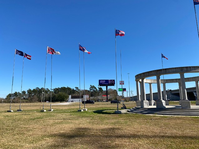 The monument was conceived and built by the Orange, Texas chapter of the Sons of Confederate Veterans. It sits at the intersection of Martin Luther King, Jr. Drive and Interstate 10, just a few exits west of the Louisiana border.