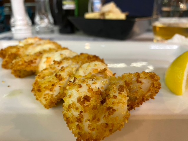 The first night I was in Pescara, I saw all these Carabinieri (Italian paramilitary police) filing into this forgettable seafood takeaway shop. The joint had a few tables where I enjoyed lightly breaded and delicately grilled cuttlefish and shrimp. The cuttlefish were wonderfully tender, the shrimp so sweet they tasted like candy.