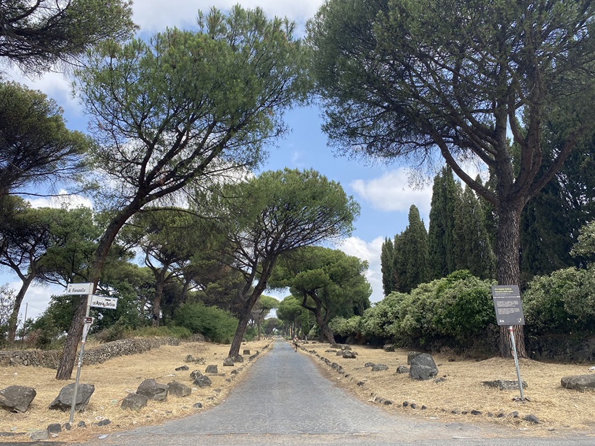Below: the estate lies adjacent to one of the most beautifully maintained stretches of the Appian Way. It can’t be seen in the photo but it stands just to the right of the road. Note the name of the crossroad: Fiornello (after Fiorano).