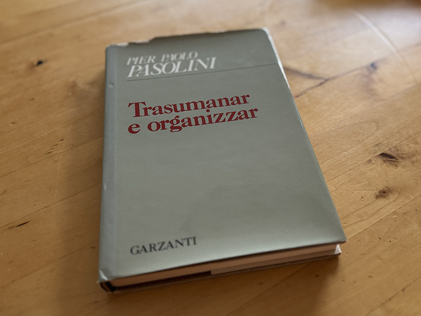 I’ve been reading Pasolini’s book. The poems are dense, sometimes surprisingly playful, sometimes overly erudite for some readers; other times they are profound and offer harsh insights into human nature. They are always beautiful, always subversive.