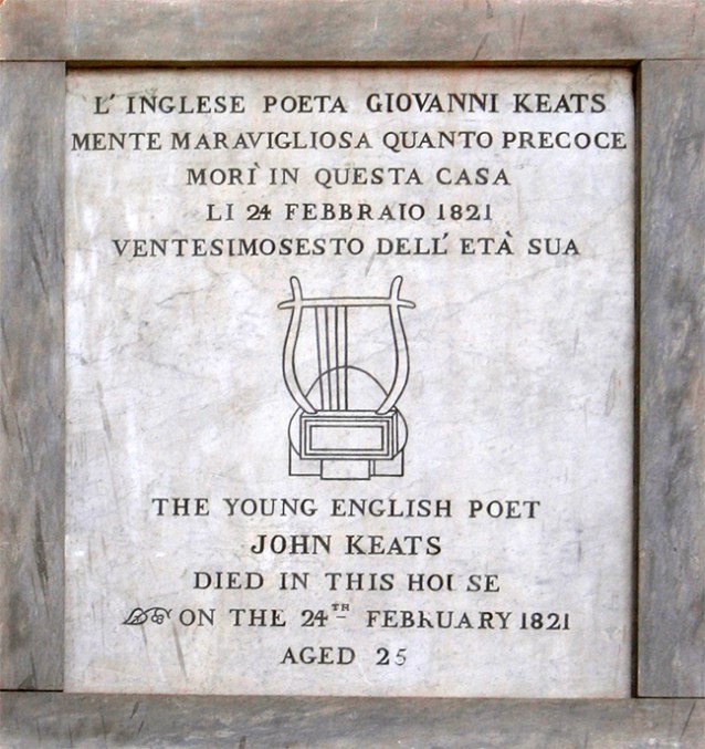 Above: a plaque outside the Keats-Shelley museum in Rome located in the palazzo where Keats died at age 25 (image via
