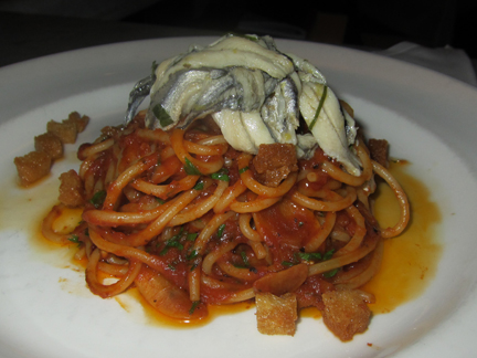 I connected yesterday with Lou (who needs no introduction here) and my new BFF Taylor Parsons, wine director at Osteria Mozza and Tuesday night I had dinner with Anthony and David at Mozza, where the conversation spanned an arc of Mel Brooks Hitler humor, the art of mixing (records), Anthony’s father’s incredible musical legacy (“he’s conducting better than ever at 93,” he said), burrata, anchovies, and Verdicchio.