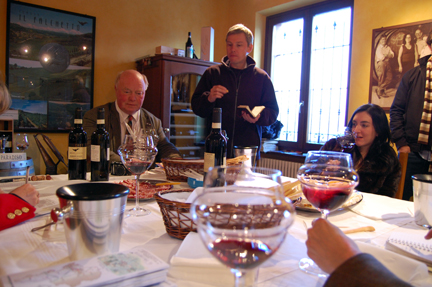 That’s my fellow “Barbera Boy” Fredric Koeppel reading one of the articles that has appeared about the “bloggers” who have come to Asti to taste Barbera. Photo by Thor Iverson.