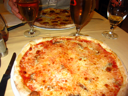 Above: My last night in Italy, this time around, I shared a pizza and a beer with a colleague and friend (who happens to be a Berlusconi supporter). The pizza was decent but forgettable. Sometimes a pizza is just pizza.