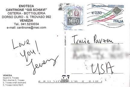 Above: Tracie P and I use all kind of electronic media to communicate when we’re in Italy but we still love postcards.