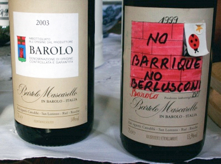 Bartolo Mascarello’s famous label, “No Barrique, No Berlusconi,” a now iconic image that empowered wine as an ideological expression. Photo via Spume.
