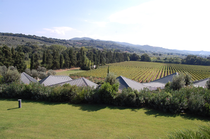I’ve visited some impressive wineries in my time as an observer of Italian wine and the people who grow and produce it (Soldera is at the top of that list, of course, and I’ll be posting on my incredible visit to Zidarich toward the end of this series). But Gaja’s Ca’ Marcanda stands apart, a winery sui generis.