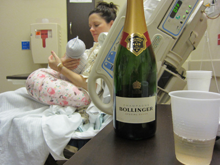 “That’s some really good Champagne,” said my father-in-law Rev. B aka pawpaw as we sat down for a dinner of crock-pot pork loin, potatoes, and salad prepared for us by Mrs. B aka nanna last night, our first at home from the hospital with Lila Jane (above).