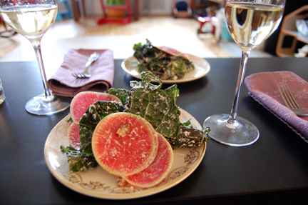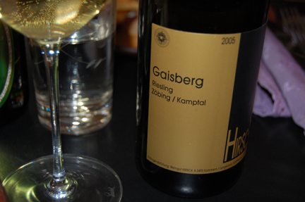 Dan mentioned that he had experienced some serious bottle variation in the lot he acquired but, man, this wine was off-the-charts good. Fresher than I would have expected on the nose (topped off? perhaps; the bottle was definitely reconditioned), with gentle berry fruit on the nose and on the palate, and wonderfully integrated tannin. I agreed with BrooklynGuy’s approach of not decanting this wine and opening it right before service (for the record, Dan had brought it over a few nights before and BrooklynGuy left it standing up right for more than 24 hours). Great wine…