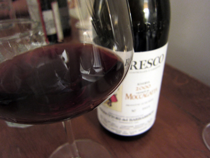 Before we got to the Gattinara, BrooklynGuy reached into his cellar for a 2000 Moccagatta by Produttori del Barbaresco, which paired superbly with a savory mushroom flan that he prepared for our Brooklyn repast. Frankly, I was surprised by how tannic this wine was, especially considering the fact that Moccagatta tends to come around earlier than some of the more powerful crus (like Montestefano or Rabajà). At 10 years out, it seems to be closing down but with a little aeration we coaxed out some bramble and red berry fruit balanced by the mushroom and earth that are Produttori del Barbaresco’s signature. Killer wine…