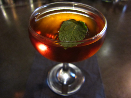 Über hipster mixologist Kate Grutman was doing her magic at the bar last night. She hooked me up with her concoction, “Il Cattivo,” equal parts of Carpano Antica Formula, Branca Menta, and Genever. That soup is hot!