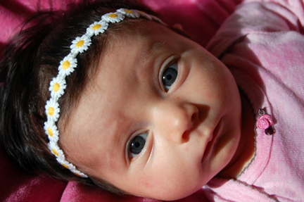 Georgia P wore her new flower-power headband for her first Valentine’s Day at Jaynes Gastropub last night in San Diego.