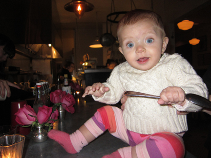 Seven-and-a-half-month-old Romy, Jayne and Jon’s daughter, showed her the ropes of her new favorite restaurant.