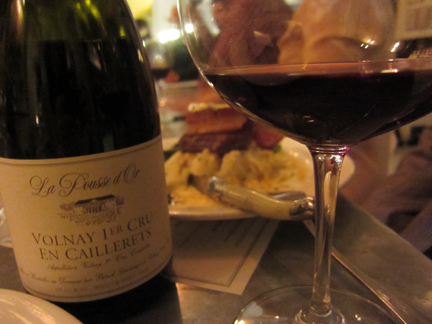 Mommies and daddies enjoyed a SUPERB bottle of 2008 Volnay 1er Cru Caillerets by Pousse d’Or (Landanger), still very tight, but rich with savory and fruit flavor and bright, bright acidity, delicious with the bacon-wrapped filet mignon.