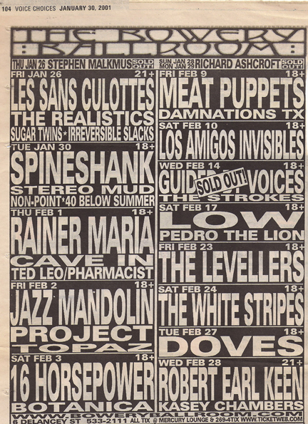 Those were wild, fun years in my life, when I was still in my early thirties and had moved to NYC just a few years previously. Back then, my day gig was writing about wine for La Cucina Italiana. The band played roughly 50 gigs a year in NYC, where we had a great following. It was a super fun time (look at the other bands that were playing the Bowery Ballroom, above, where we often were the headliners). Seems like a lifetime ago now. It was…