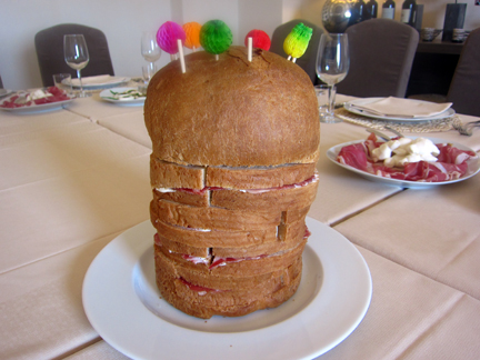 The food at Alessia Perucci’s Masseria Le Fabriche was exceptional and the meals rigorously traditional yet equally and wonderfully creative. But, standing nearly 2 feet in height, no one could quite figure out how to consume this brioche stuffed with prosciutto and cheese. It was a sight, nonetheless, to behold!
