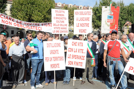Above: In a protest mounted earlier this month in Asti, besieged Piedmont grape growers and winemakers pleaded for government aid (photo by 400AsaFoto.it).