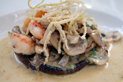 Sean matched this excellent wine with a grilled portabello cap, topped with sautéed Gulf shrimp and cremini, from the restaurant’s current and very groovy “mushroom menu.”