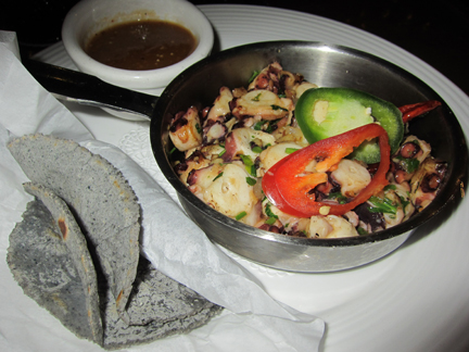 Above: Pulpo al Carbon at Hugo’s (Houston), grilled and marinated octopus with housemade salsa and three different kinds of peppers and warm pillowy blue corn tortillas. HIGHLY recommended.