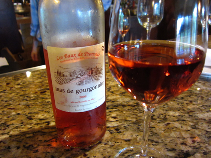 Temps had already reached the mid 80s yesterday afternoon when I rolled into Houston. Luckily, my buddy Sean Beck has some AWESOME 2009 Mas de Gourgonnier rosé from Grenache chillin’ for me when I stopped by Back Street Café for an aperitif before meeting cousins Marty and Joanne for mussels and fries last night.